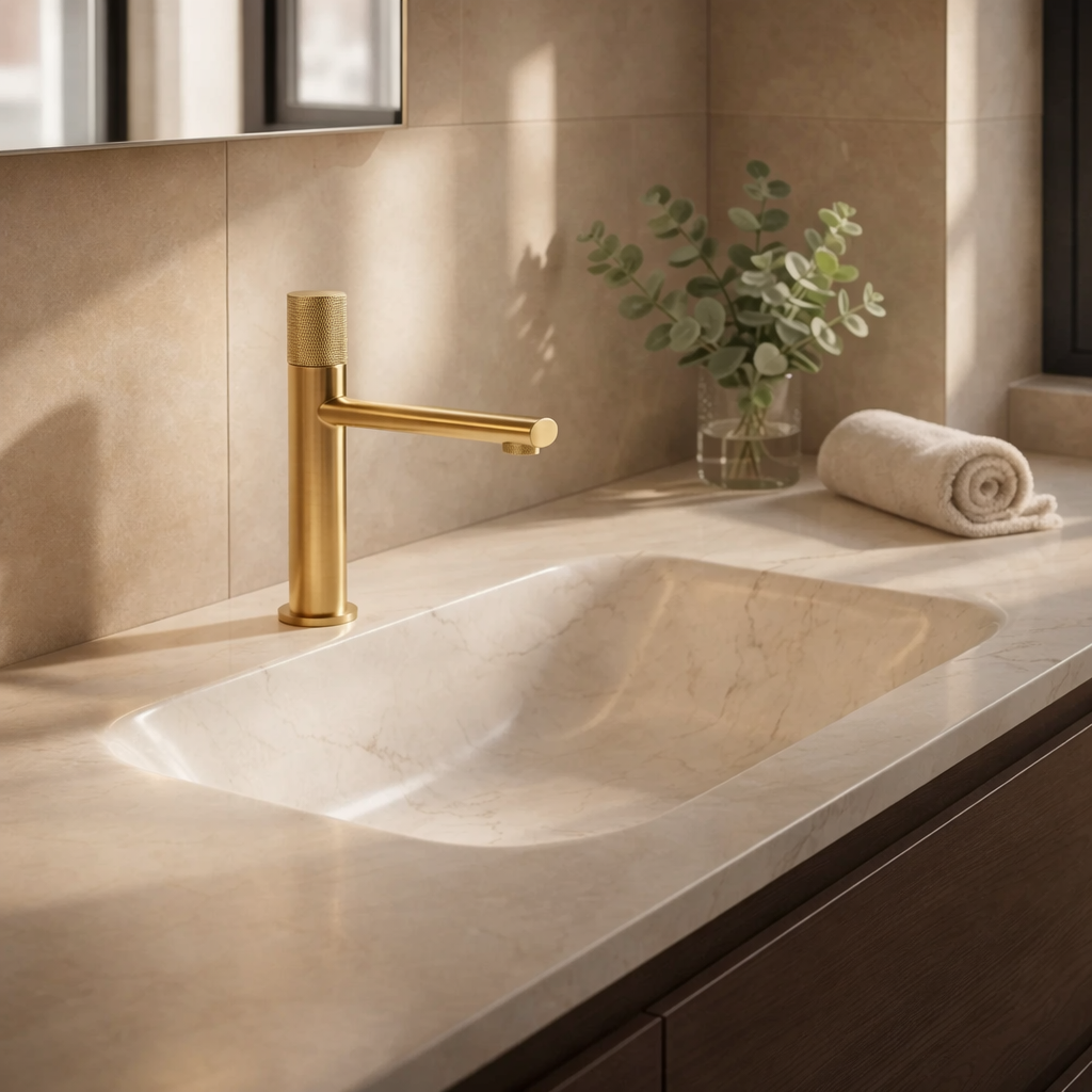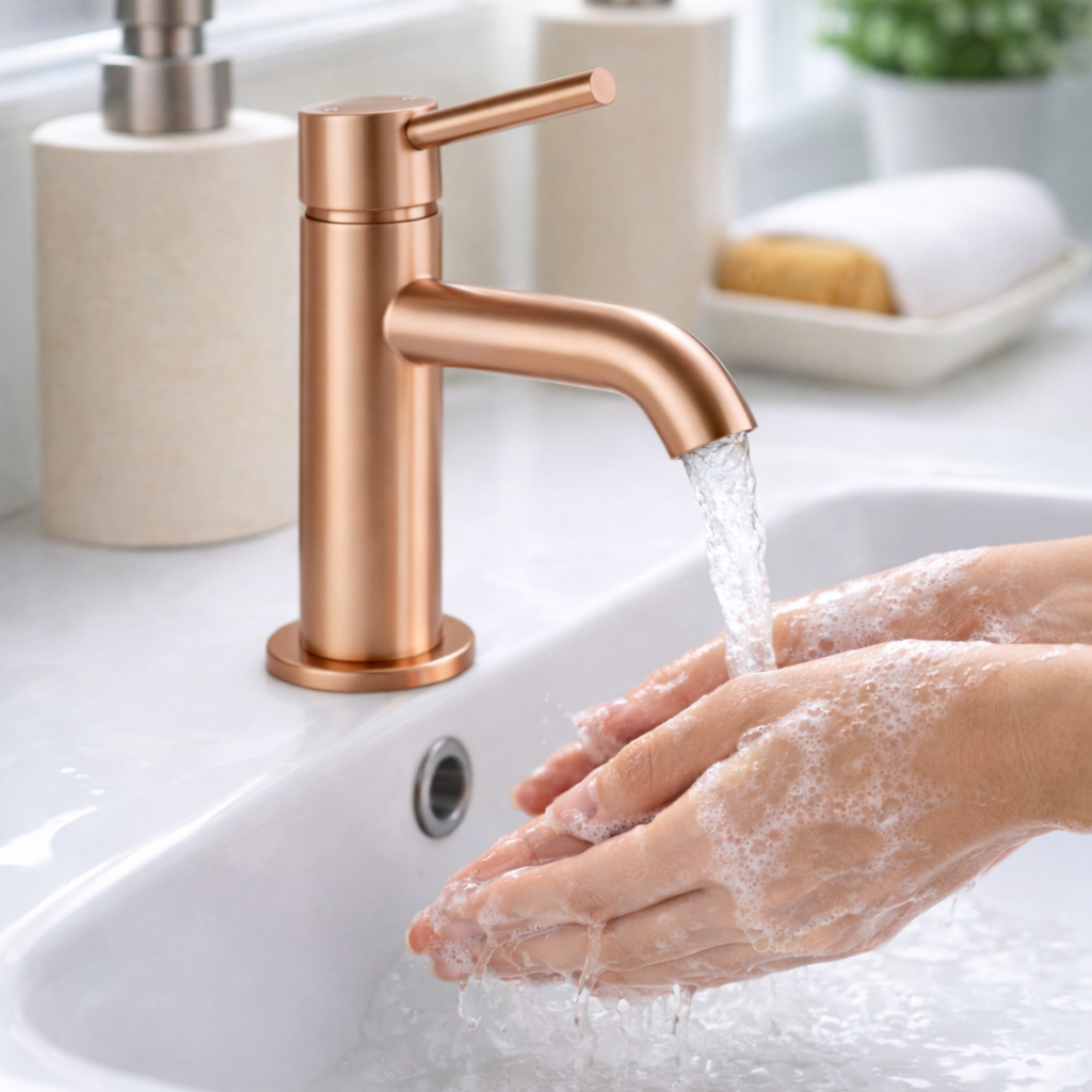 Conçu en laiton avec finition PVD, ce mitigeur résiste à la corrosion et à l’usure liée à l’humidité.